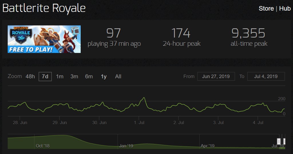 只不過免費營運策略並未如想像中好轉,根據 Steamchart,《Battlerite Royale》大逃殺同上玩家數慘淡,確實不足已支撐遊戲營運。