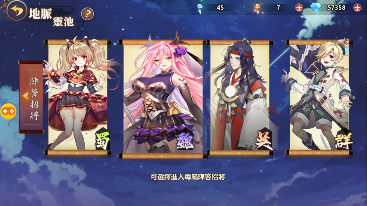 接著我會建議各位盡可能解完每日和新手任務,目標是盡快獲取足夠數量的祈福鈴(抽獎券)。前 50 抽可以看看自己大多抽到哪個勢力的武將,而後就專攻「陣營招將」,目標是盡可能地湊滿同陣營角色,滿足靈氣條件。