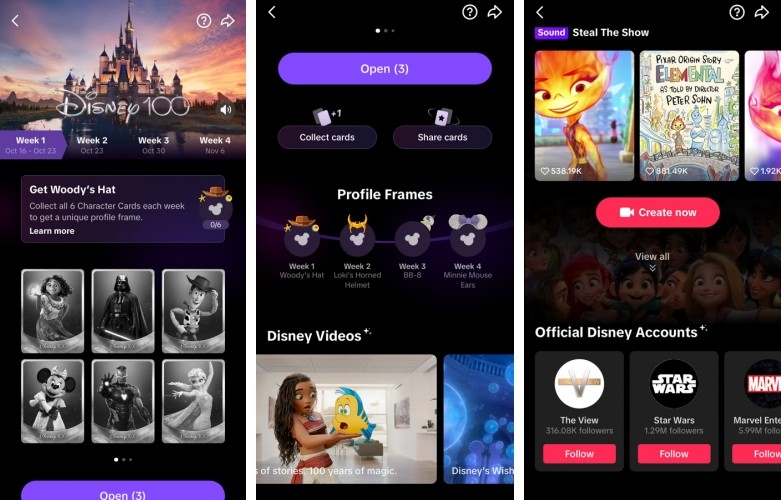 本次合作另一話題是類集換式卡牌遊戲,TikTok 用戶能透過觀看影片、追蹤帳號、參與活動獲得角色卡包,當卡片集齊就能兌換迪士尼風格的主題頁面。官方僅透露本次活動為期四週,但沒有說明相關主題與特效濾鏡的保存期限。