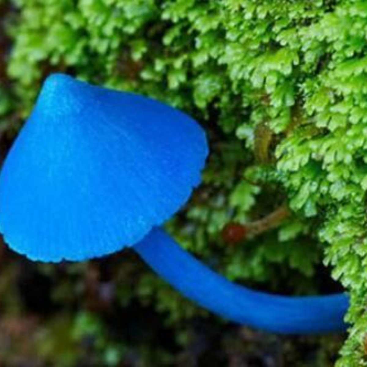 天藍蘑菇是在紐西蘭和印度發現的一個菌種。這個小小的蘑菇通體都是藍瑩瑩的,只有菌褶部分可以看到紅色孢…