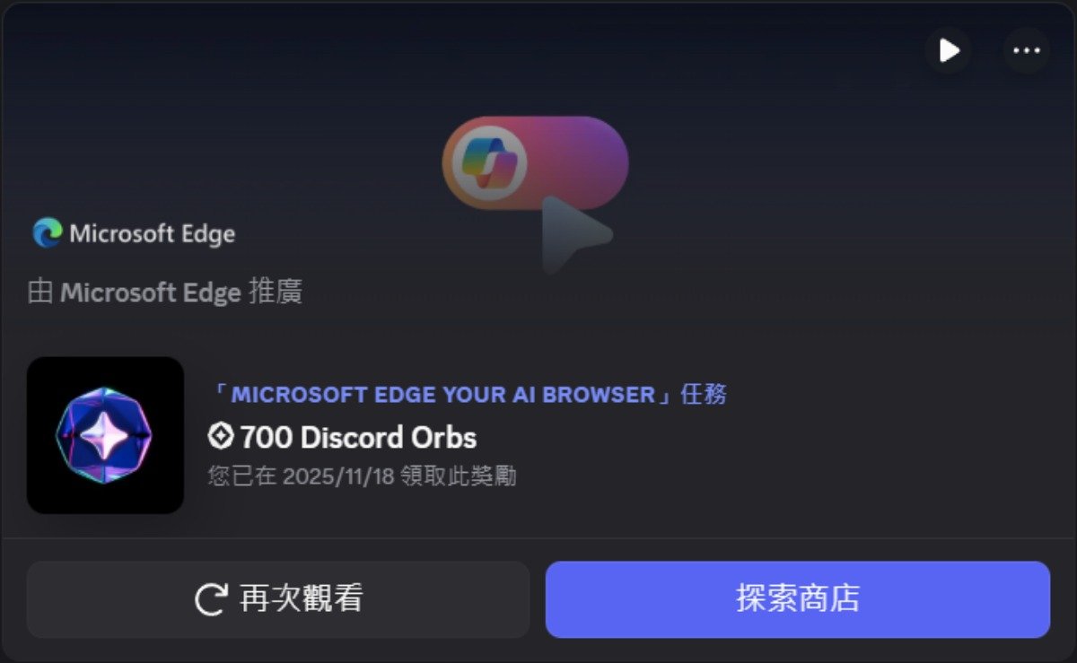 DC看影片領700 Orbs https://discord.com/quests/1438202046804136028