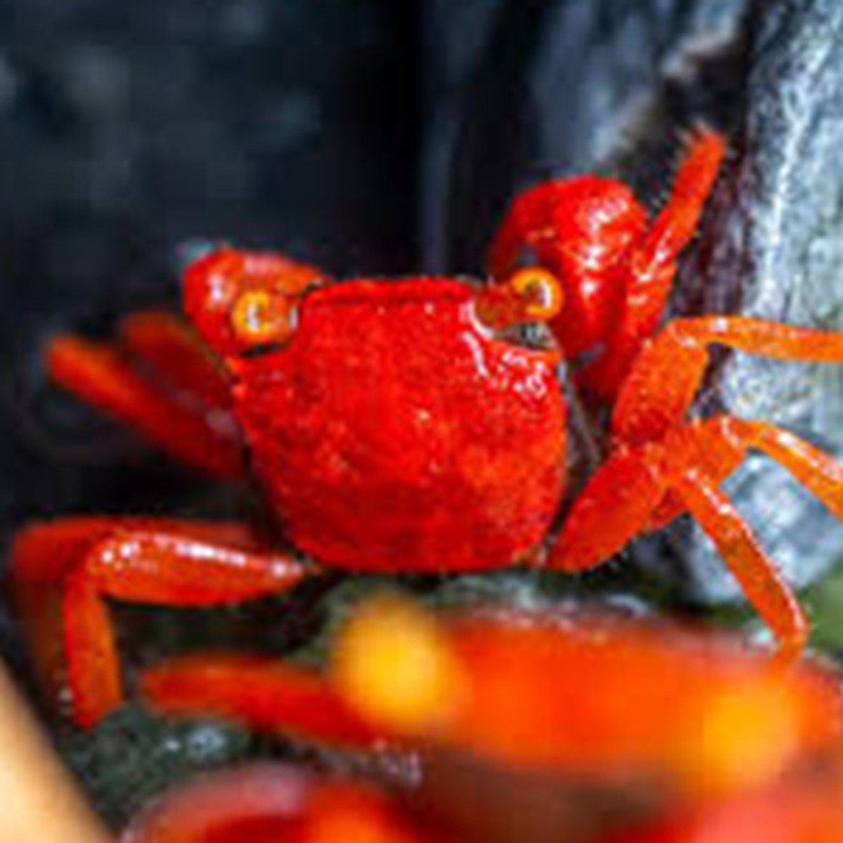 番茄惡魔蟹:全身除眼睛外都呈現鮮紅色,與其他惡魔蟹相比顯得非常特別,是比較少有的純色係。 1. 母蟹顏色比雄蟹黯淡,鉗子小。 2. 蟹類會在緊張時斷腳求生,這是正常的。脫殼後斷肢會重生。 3. 亞成體雖然顏色比較淡、但非常活躍。一般在脫殼1-2次左右變成成體。