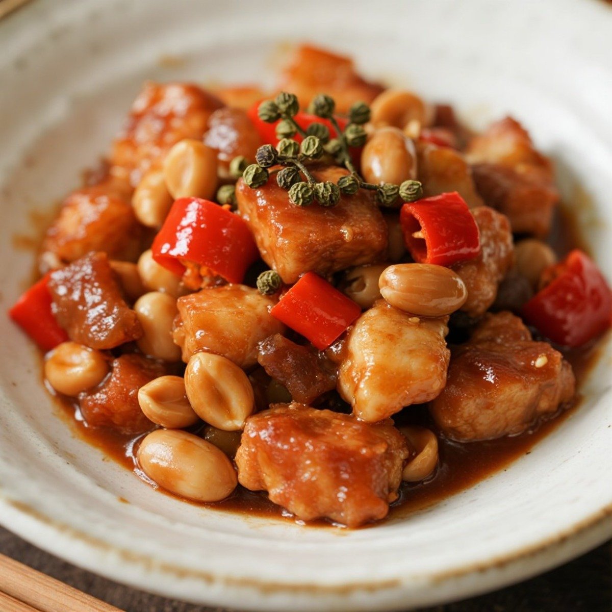 宮保雞丁(Kung Pao Chicken) — 四川名菜,雞丁搭配花生、辣椒與花椒快炒,鹹香帶麻。