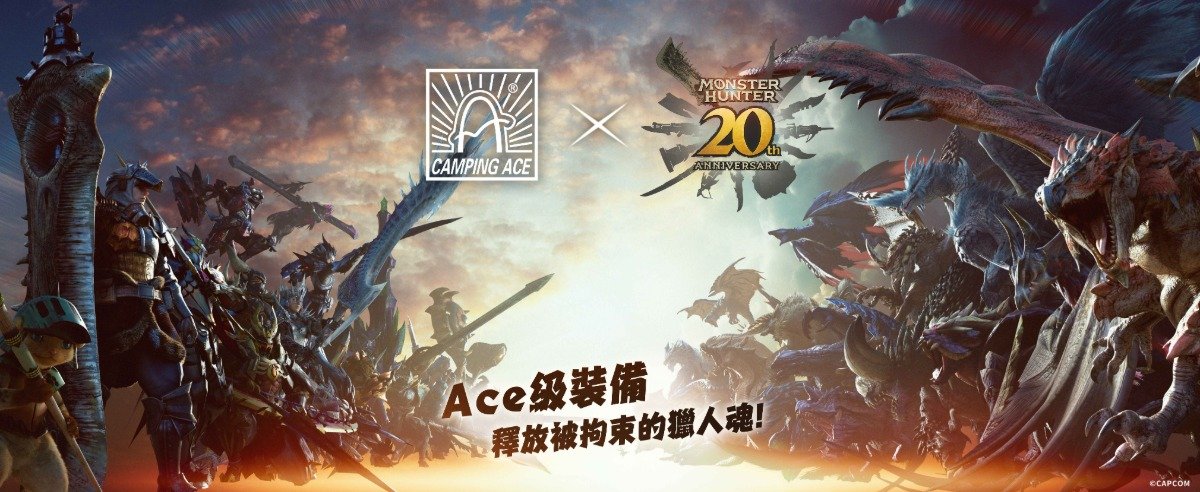 台灣戶外用品品牌「Camping Ace」與 CAPCOM 旗下遊戲《魔物獵人(MONSTER HUNTER)》的 20 週年聯名商品於 6 月 15 日(日)正式上市,獵人們終於可以將《魔物獵人》的熱血冒險延伸到大自然中。