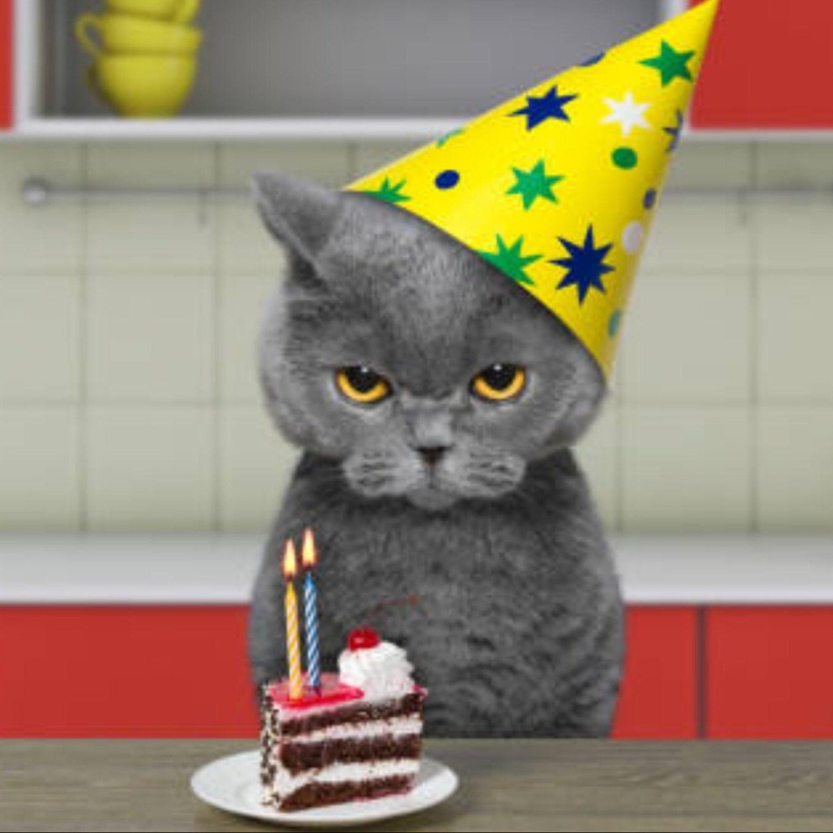 貓過生日 看起來臉臭臭的~