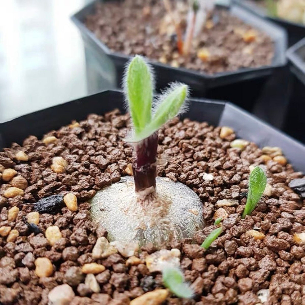 毛葉海蔥:又被稱為虎眼萬年青,原產於南非。株高可達1.5公尺,約8~12枚葉子從球莖抽出,葉子狹長,長約40~100公分,葉肉柔軟,略為肉質。花為總狀花序,花莖由植株中心抽出,花朵密生於花莖頂端,狹長的花萼生於小花基部,花徑約0.9公分,花色為淺綠色,花瓣中肋顏色較深,花朵具有香味。球莖會露出土表,且子球會由球莖表面萌出。
