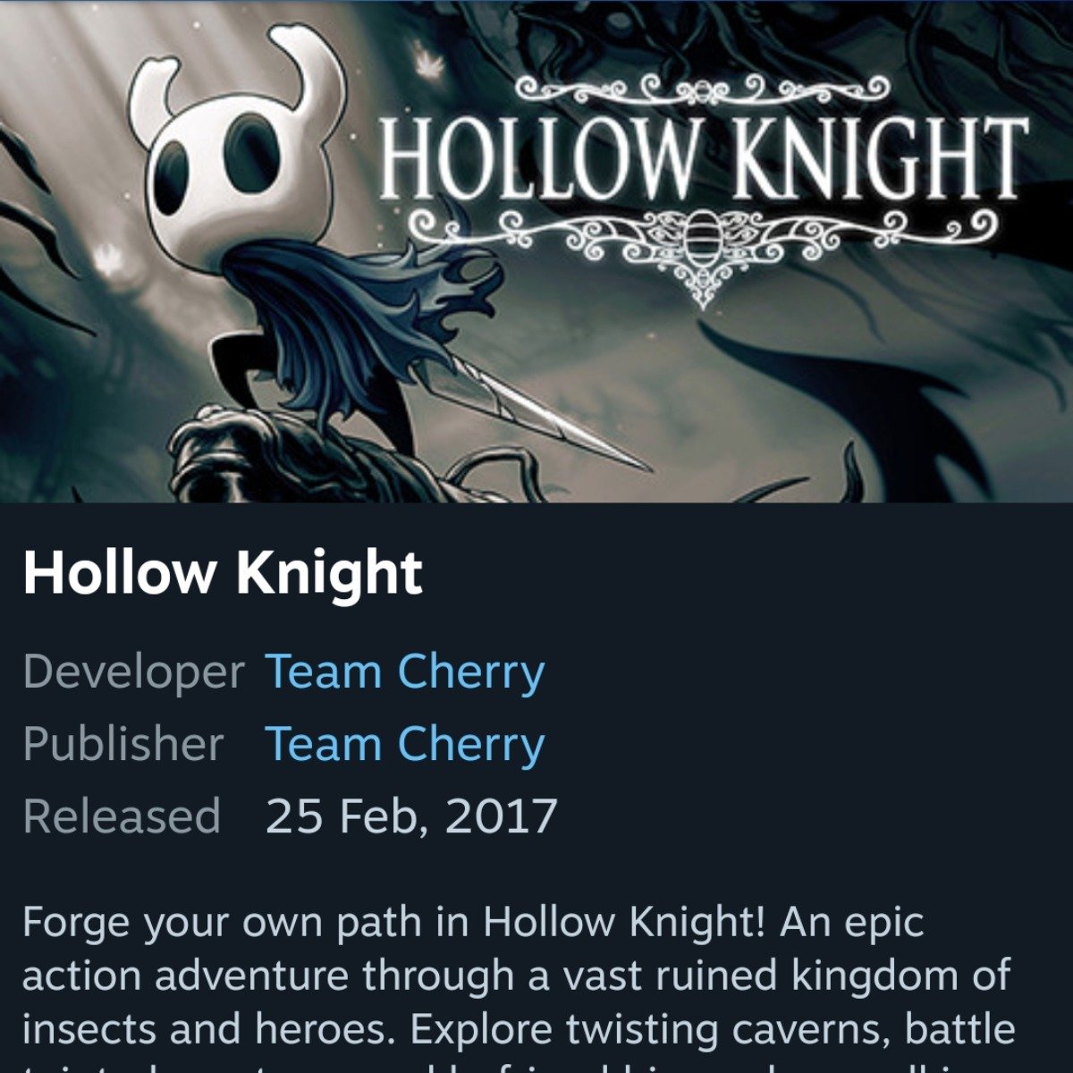 Steam Rogue冒險節必玩遊戲推薦《Hollow knight》,因為這次特價來到歷史新低,只要160即可入手