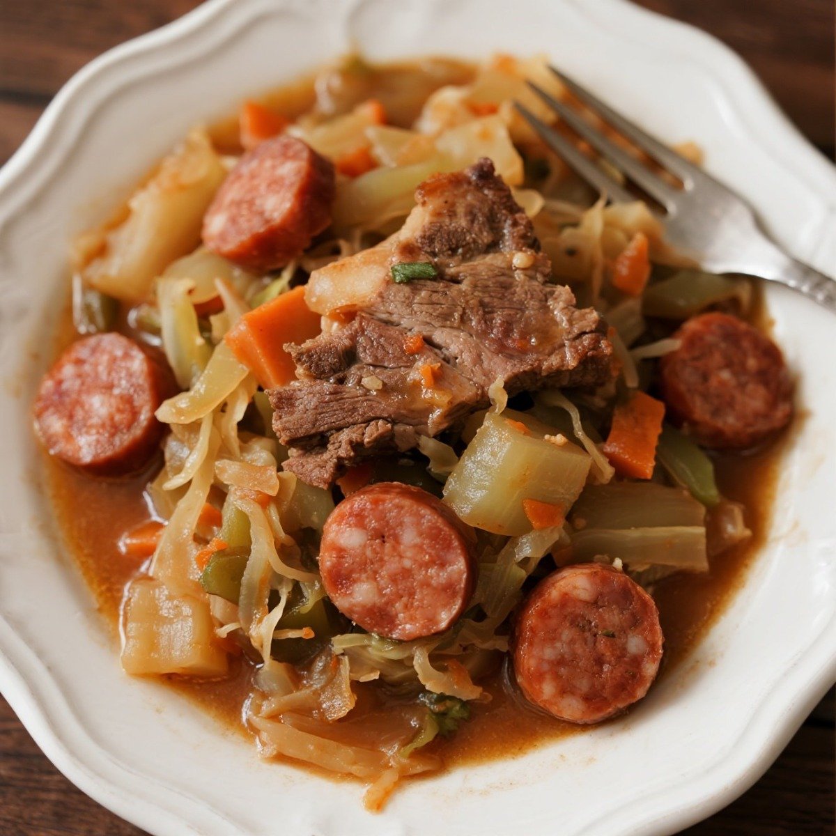 波蘭獵人燉肉(Bigos) 酸菜、豬肉、香腸與野味混合長時間燉煮,風味厚實耐吃。
