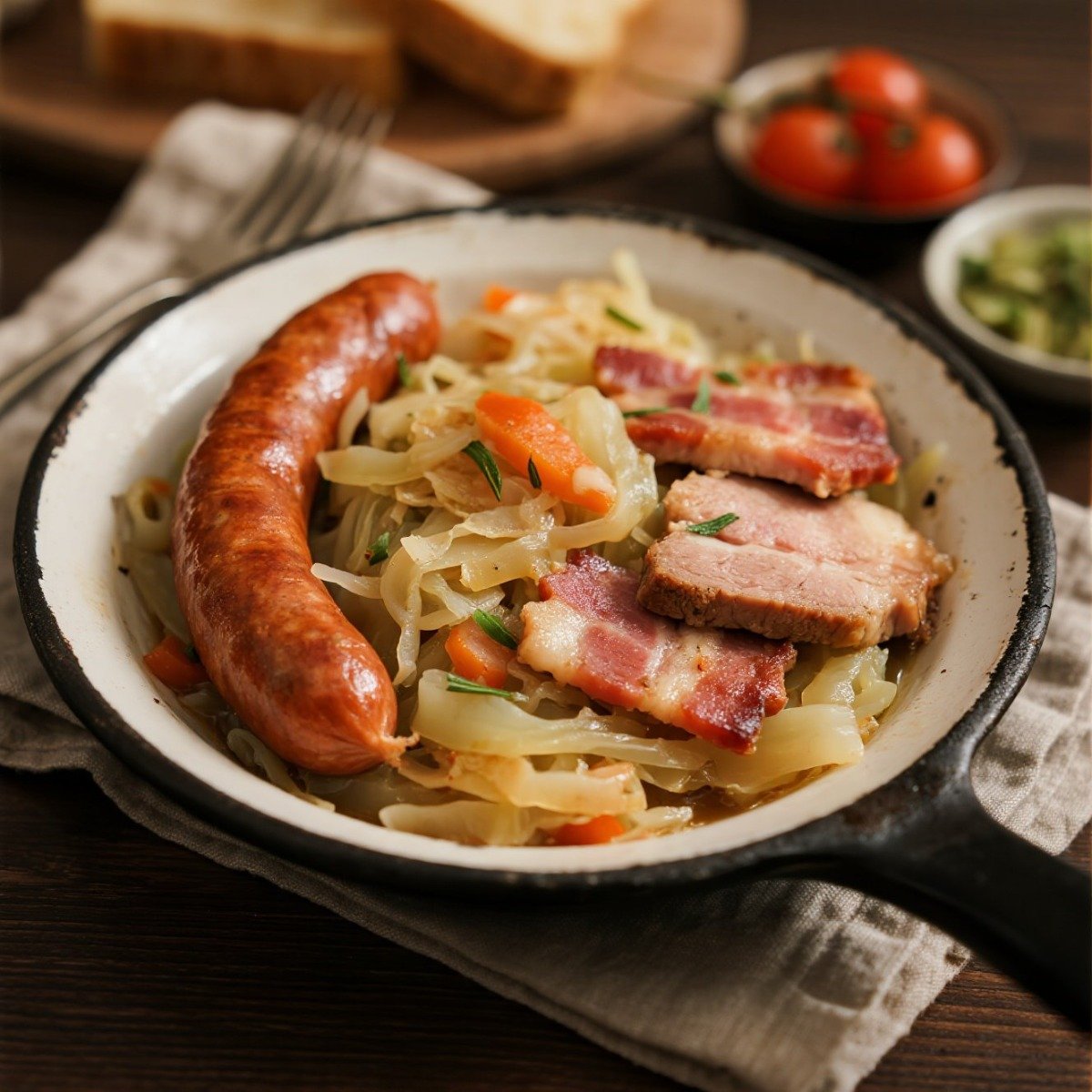 阿爾薩斯酸菜燉肉(Choucroute Garnie) — 酸菜與香腸、豬肉、培根一起燉煮。