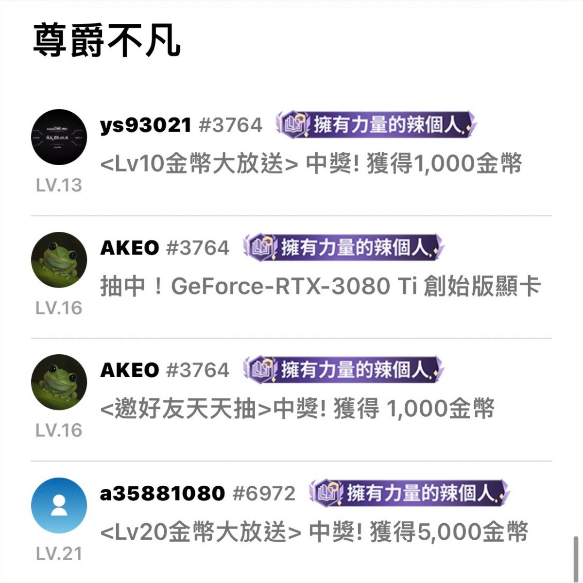 想想看 這個可愛又無害的小青蛙 能抽到創始版3080Ti外 再加一千金幣 而我一個都沒中過... …