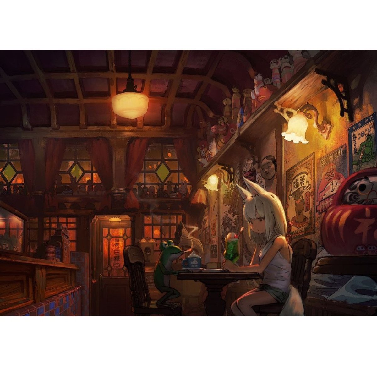 《狐與蛙之旅》舞台是以具有日本溫泉街風情的島嶼,這裡有著路邊攤、燈籠點綴等充滿日本印象的設計。玩家在遊戲中,將扮演狐狸少女,與青蛙一起旅行,但在這趟旅行過程中,幕後不安的影子卻逐步靠近,就這樣遊戲展開了這漫長的一夜....