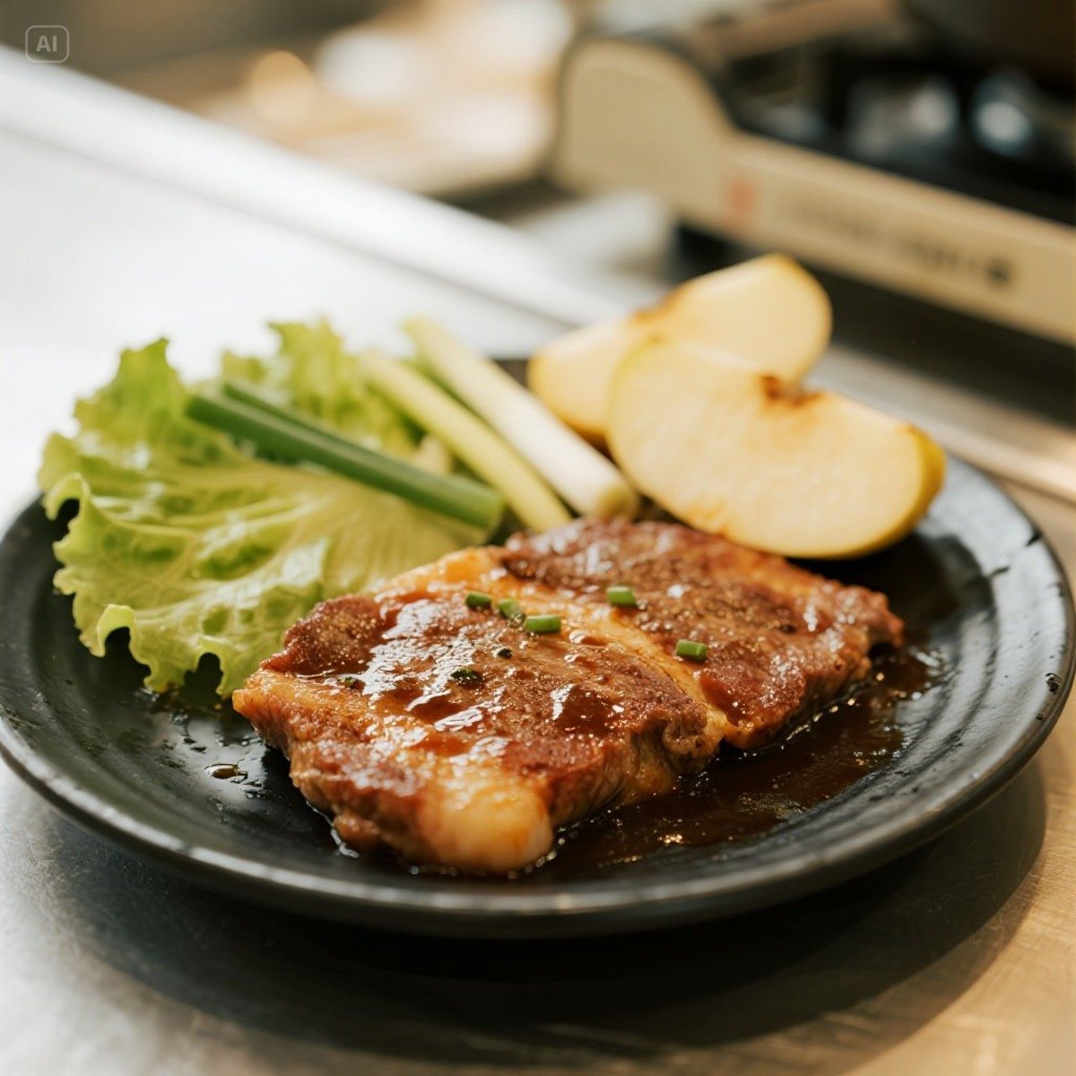 烤牛肉(Bulgogi)-牛肉片以醬油、蒜與梨汁醃漬後快炒或炭烤,甜中帶香。