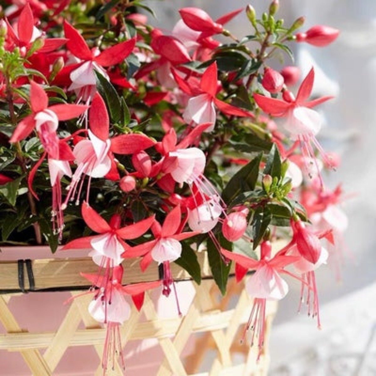 吊鐘花:屬落葉或常綠灌木,人工培養出的園藝雜交種,枝條柔軟,伸長後具懸垂性。單葉對生或3~5葉輪生,卵狀披針形或橢圓形,葉緣有鋸齒。花著生於枝條上端之葉腋處,花梗細長而下垂;花萼筒管狀,有4片修長的裂片,裂片開張或反捲;花瓣4枚,微展,單瓣或重瓣;花萼及花瓣顏色多樣,有酒紅、粉紅、桃紅、紫紅、純白等。花期4 ~10月,性喜冷涼或溫暖濕潤。臺灣以中海拔冷涼山區栽培較為適合,平地高溫越夏困難。