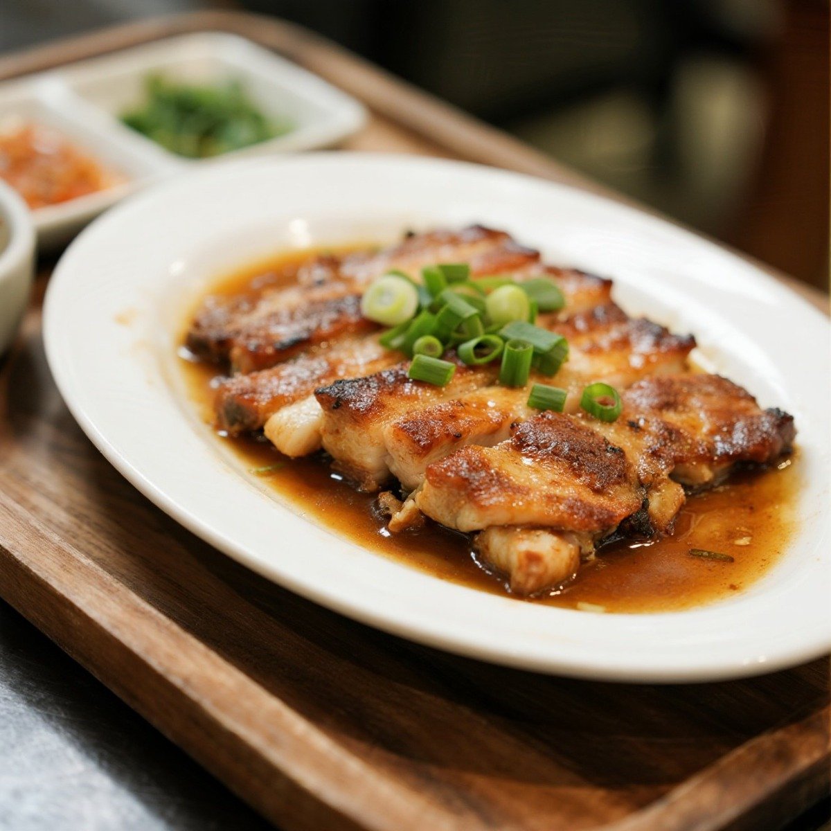 烤豬五花(Moo Yang) — 魚露蒜香醃豬肉炭烤,外脆內嫩。