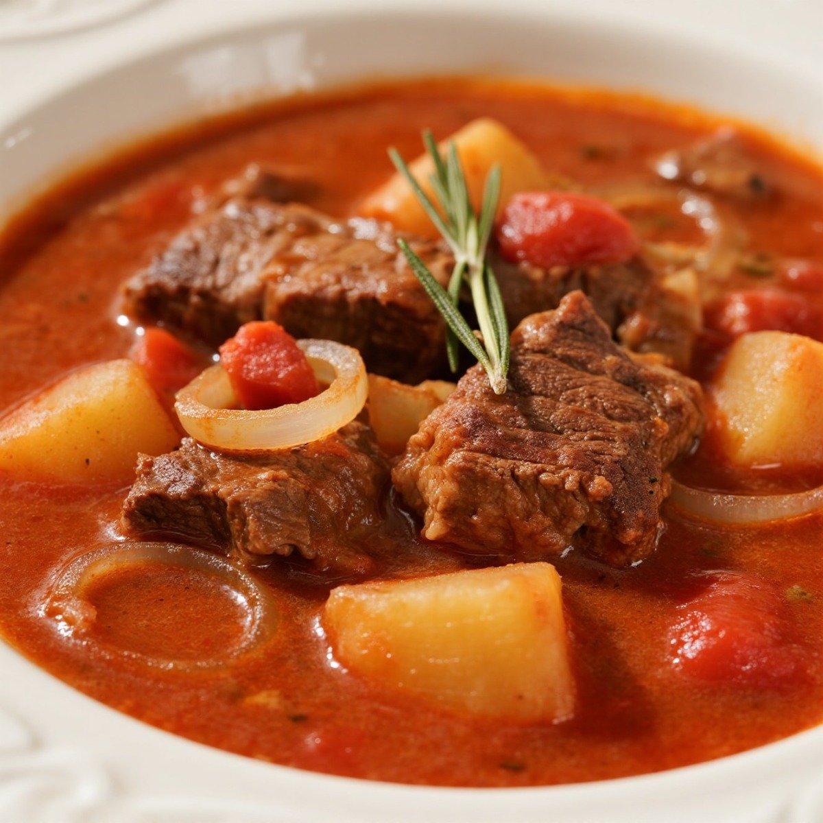 牛肉、洋蔥與紅椒粉慢燉,湯汁濃郁,是匈牙利國菜。