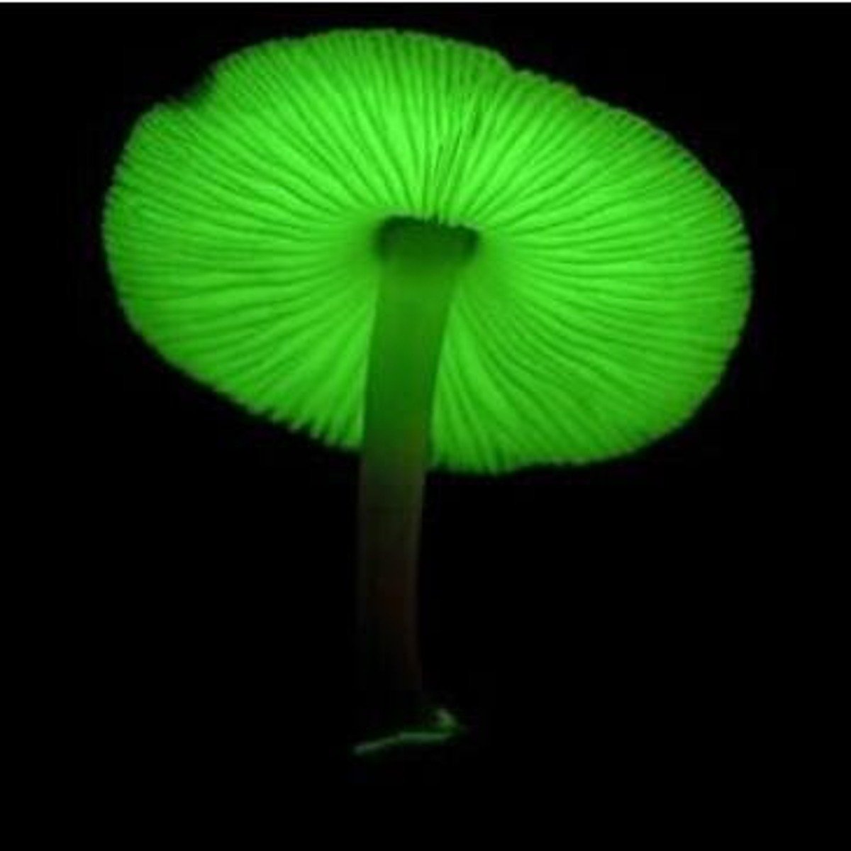 綠色霓虹蘑菇,或稱螢光小菇(學名),會發出綠色螢光的蘑菇,通常在雨季出現在日本和巴西的森林中,和它們同樣閃閃發光的孢子一起布滿地面。這種蘑菇鮮艷奪目的外表是源於生物發光,而此奇妙的生物現象天然存在在眾多自然界的植物和動物體上。