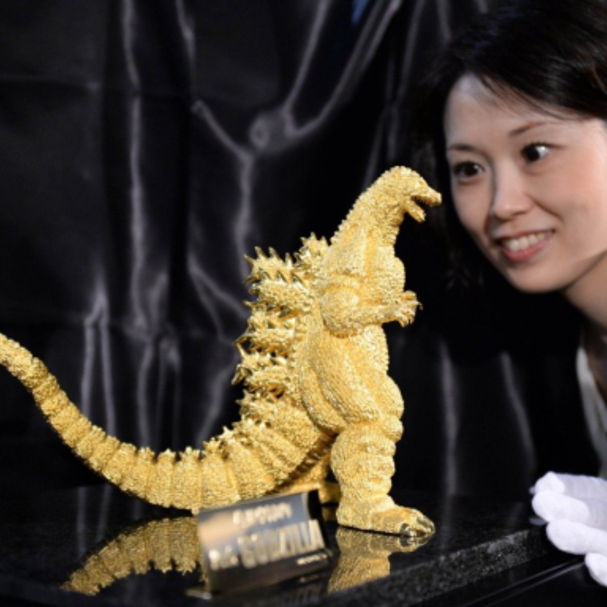 史上最貴的 24 克拉純金哥吉拉公仔,23.8 公分高,150萬鎂 (時值約 4800 萬元台幣)。
