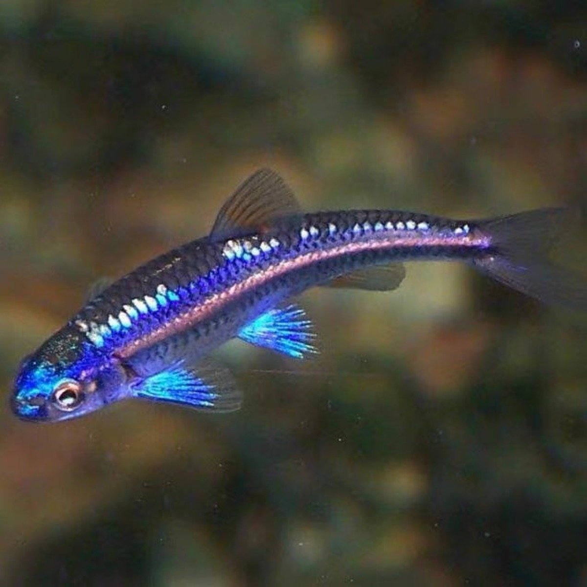 紫光精靈魚也叫多彩霓虹魚,分佈於北美洲美國喬治亞州西北部黑武士河流域,主要棲息在多碎石的急流和清澈的小溪流中,紫光精靈魚的體型偏修長,身上有銀紫色靚麗的鱗片,其鱗片會隨著魚兒的遊動,不時閃出鮮豔的紫紅色澤,微弱的燈光更可明顯觀察到它們如虹彩般的螢光體色,如同水中躍動的精靈一樣。紫光精靈魚屬於冷水魚類,具有耐低溫、適應能力強等優點,其性情活潑、溫順,可與相同性格的小型魚和小蝦一起混養;當溫度下降到10℃時也能生存,可見其耐低溫的能力是比較強的。成体尺寸:8 cm温度:24 – 28°C