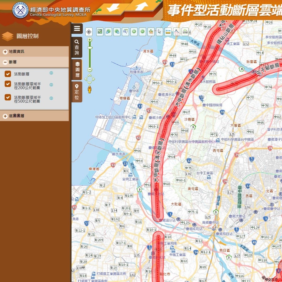 你家附近有地震斷層嗎? 請進入下方網站 https://eventfaultgis.moeacgs.gov.tw/eventgis/ 點開「圖層」,勾選顯示「活動斷層」、「活動斷層環域半徑 200 公尺範圍」、 「活動斷層環域半徑 500 公尺範圍」,最後在「定位」就完成了!!! 圖片 https://eventfaultgis.moeacgs.gov.tw/eventgis/ 消息來源 https://technews.tw/2022/09/19/gis/