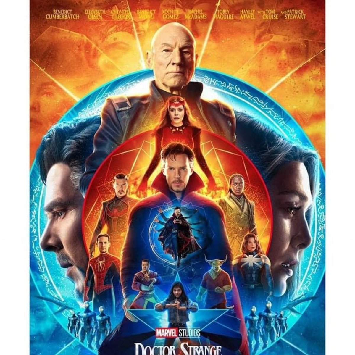 大爆雷海報~~奇異博士2 最上方為演員名單英文 看藍跟橘的地方超多剪影