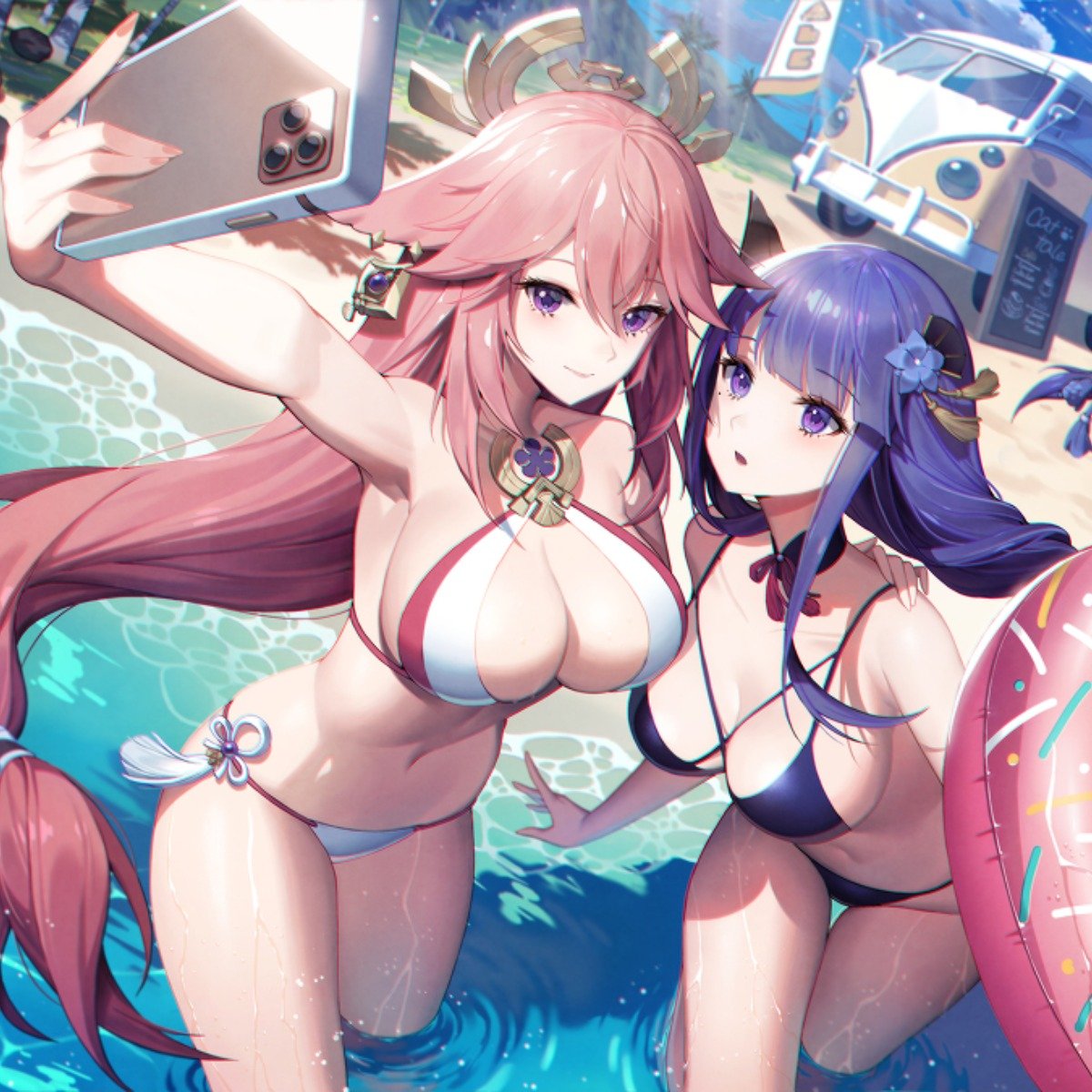 海辺の雷電将軍と八重神子 https://www.pixiv.net/artworks/98870307