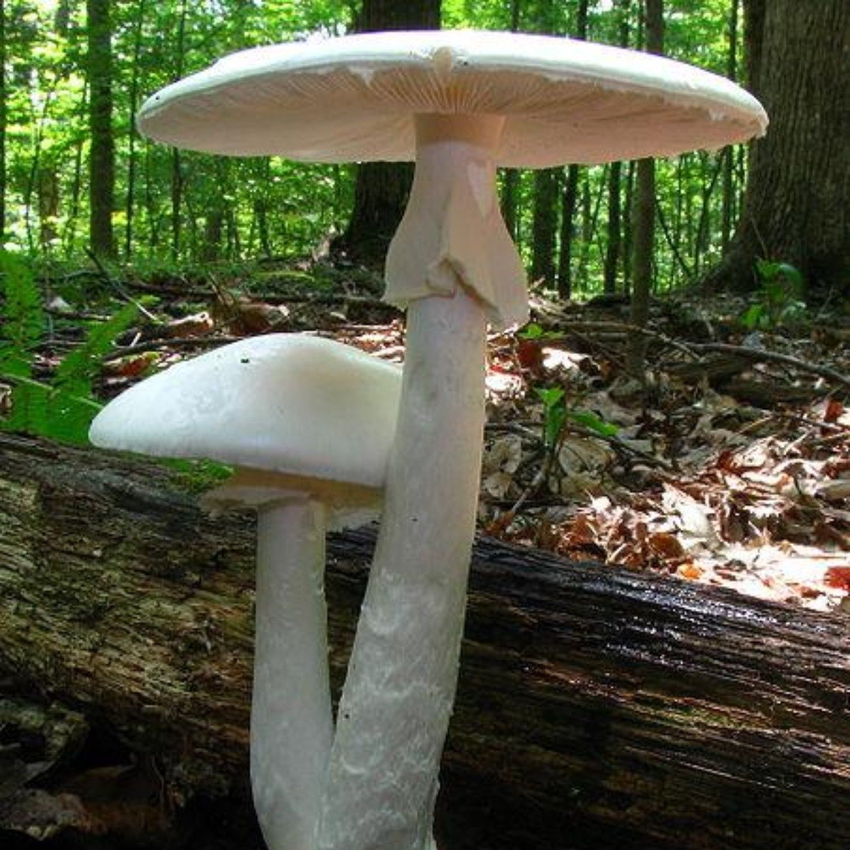 死亡天使蘑菇:是一種含有致命毒素的真菌,一般分布於北美東部南部至墨西哥的針闊混交林和落葉闊葉林,也被發現在哥倫比亞的松樹種植園。蘑菇有白色的光滑菌蓋,直徑可以達到10cm;菌柄長8-14cm,粗2-5cm;有菌托較厚呈苞狀。 死亡天使含有鵝膏毒素,可抑制RNA聚合酶並干擾各種細胞功能。中毒通常始於肝和腎,2天內可致命。