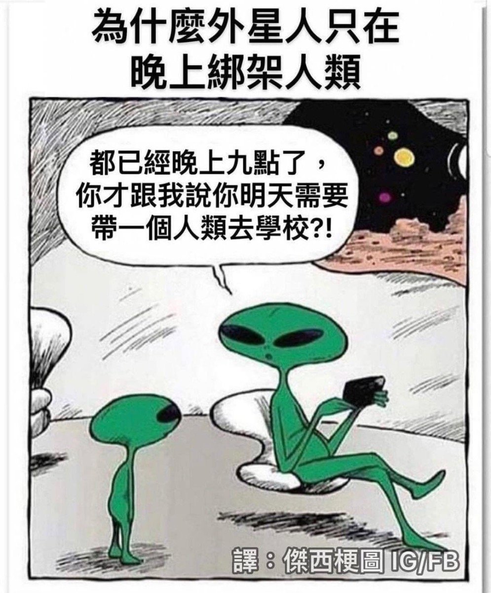 無意間看到的梗圖: 好奇如果有一天,地球科技突飛猛進,且找到地外生命時,綁架一個地外生命去學校,…