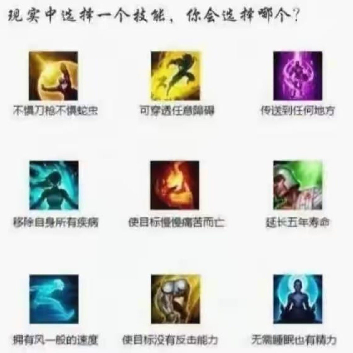 在現實中選擇一個召喚師技能 你們會選擇哪一個?