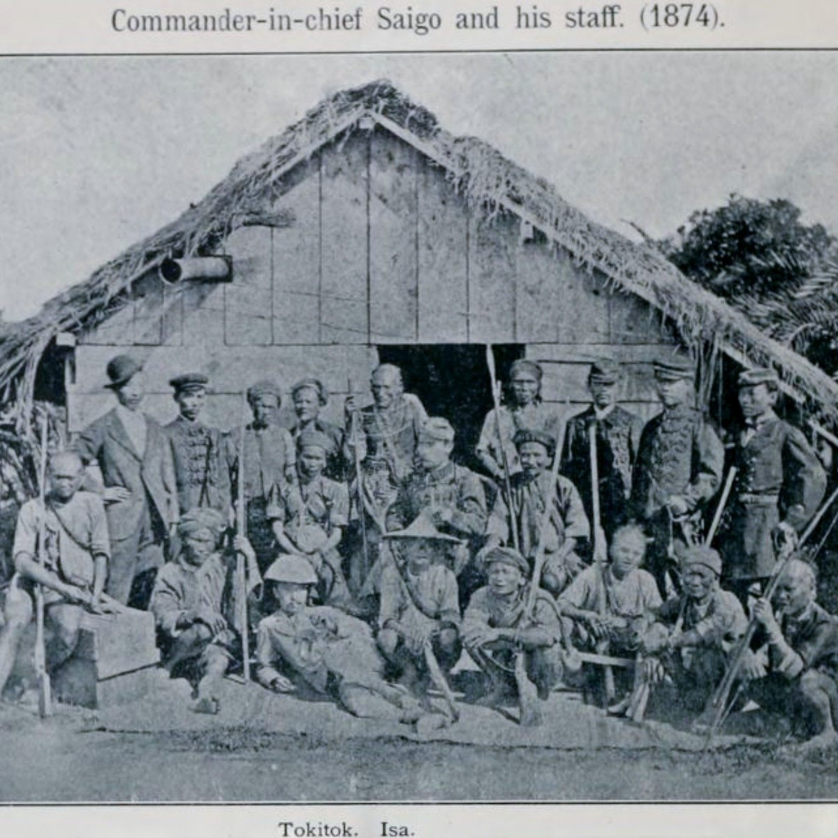 羅發號事件後不久,琉球船也擱淺在斯卡羅地區引發事件,導致1874年日軍入侵,石門戰役後,日軍指揮官西鄉從道與排灣族領袖合影。左坐者為卓杞篤之養子朱雷、中坐者為西鄉、右坐者為一色。