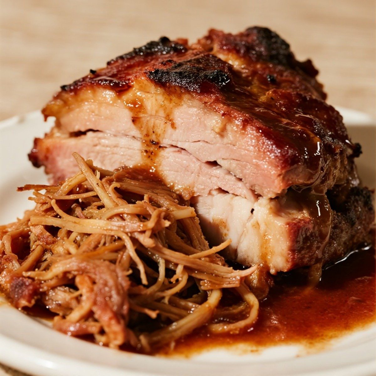 豬肩低溫慢烤後手撕,拌上煙燻醬汁,口感鬆軟入味。