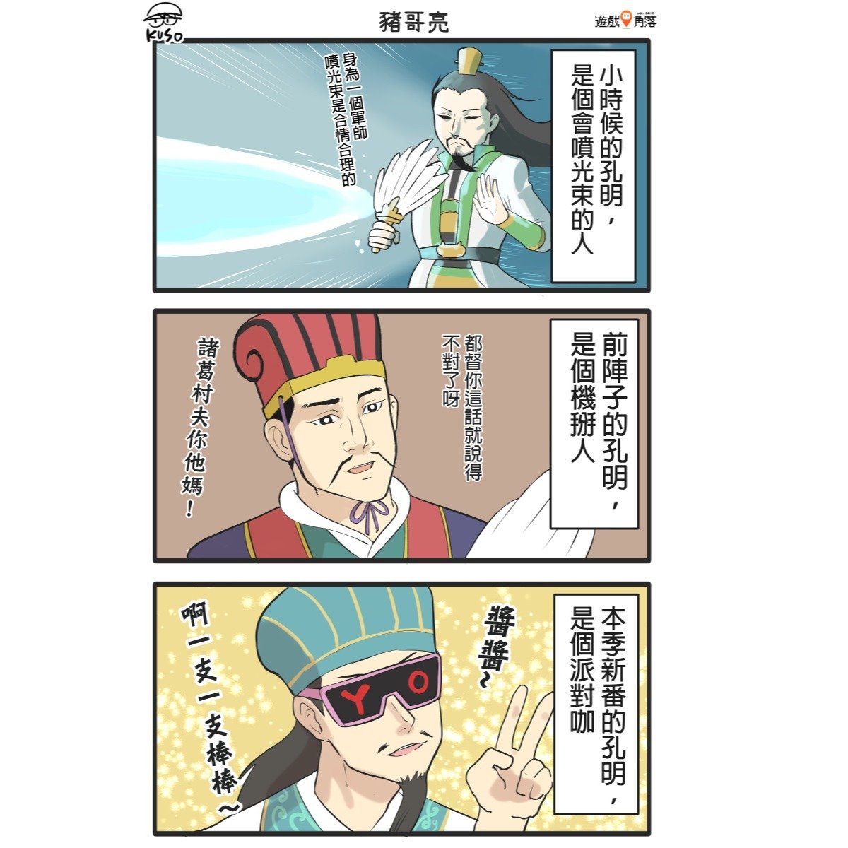時代不一樣了...孔明也不一樣了.. 來聽聽OP吧... https://www.youtube.com/watch?v=C-sAGnIxTWc 第二格 諸葛村夫傳說 https://www.youtube.com/watch?v=rNS8XQO3WVo