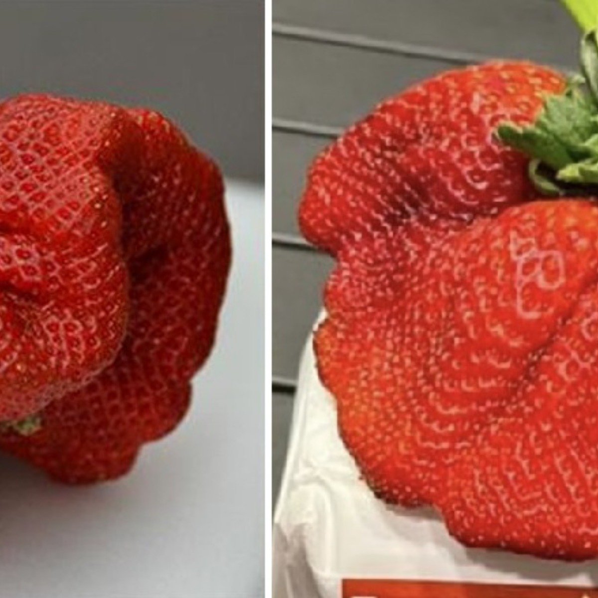 右邊是以色列種出的最新金氏紀錄草莓289克,打破之前日本產出的250克紀錄,但是一般草莓聞起來很香…