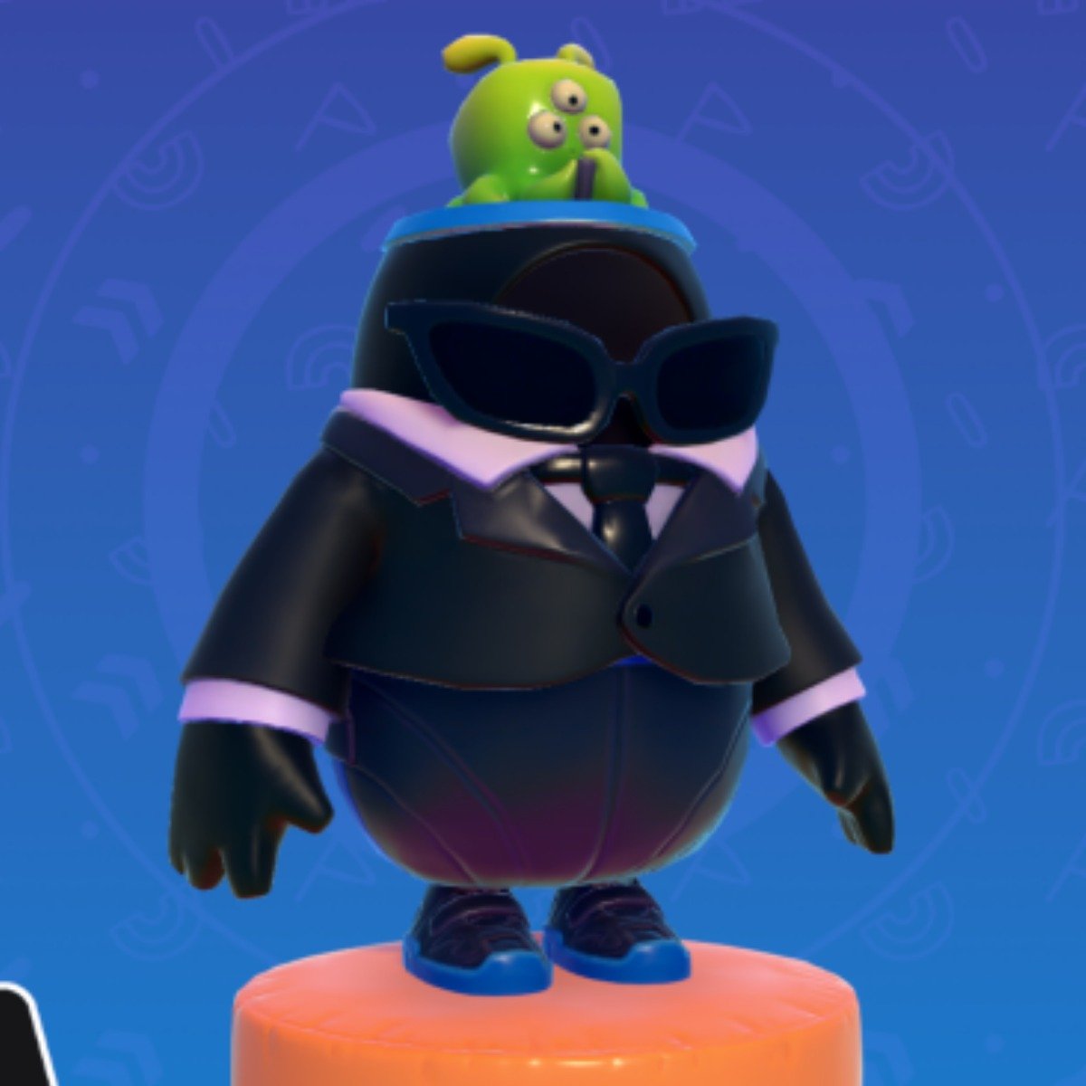 最愛的糖豆人造型分享《隱埋姓名》 因為這無疑是糖豆人中最低調存在了 全黑西裝加上SpecialEffect Ninja的褲子 頭上還有外星人 超帥~