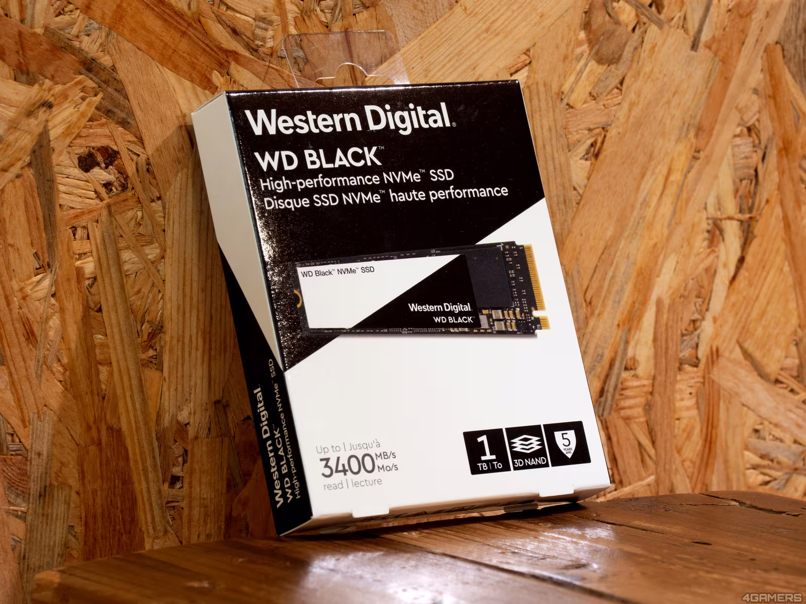黑白撞色的外盒看起來非常俐落大方,外盒清楚標示高達 3400 MB/s 的讀取速度、1TB 容量、採用 3D NAND Flash 顆粒以及 5 年保固等資訊。
