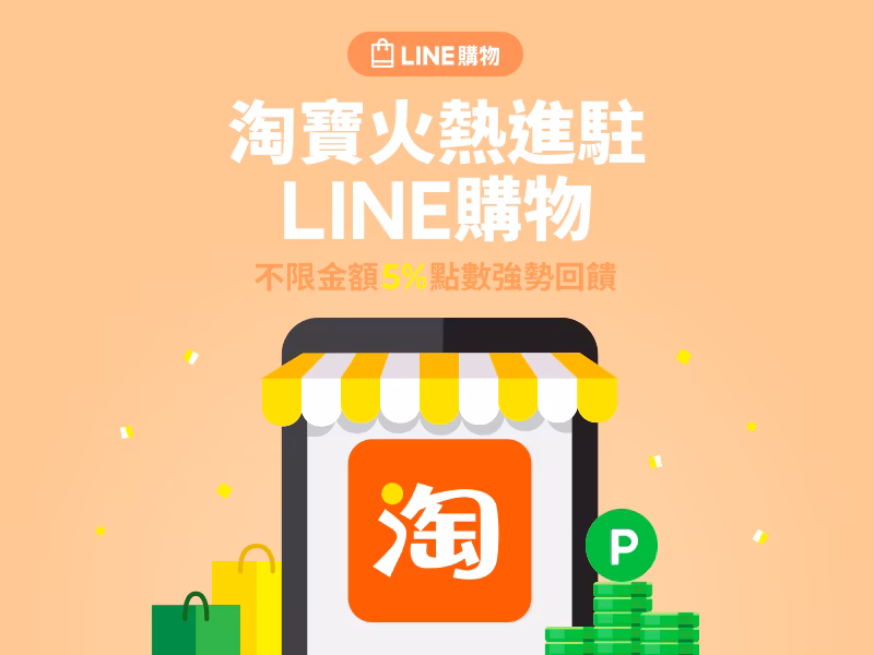 第一重:淘寶火熱進駐,不限金額LINE Points 5%強勢回饋!