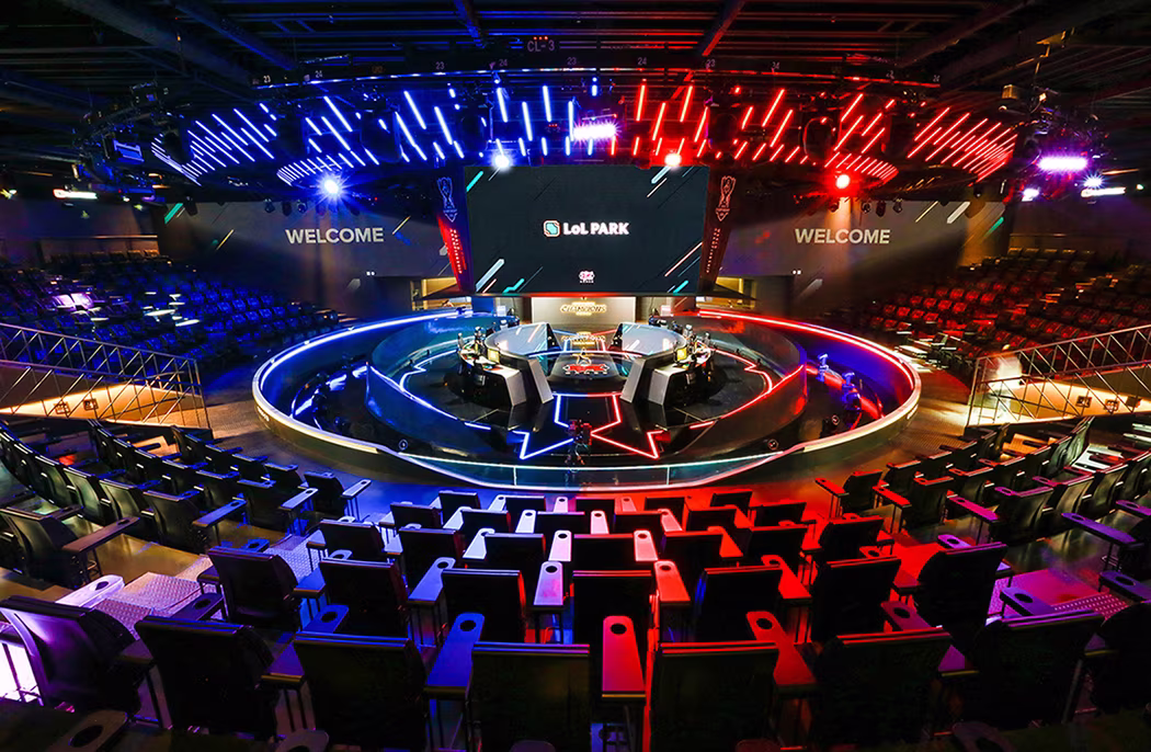 「LoL Park」位在首爾鐘閣站的 Gran Seoul 大樓三樓,佔地面積約 53000 平方英尺,可容納約 400~450 名粉絲觀戰。場館以選手在場地中心,而粉絲圍繞在側的競技場方式呈現精彩賽事,同時 Riot 也規劃了夢幻的選手更衣室以及特別設置的選手進出場通道。
