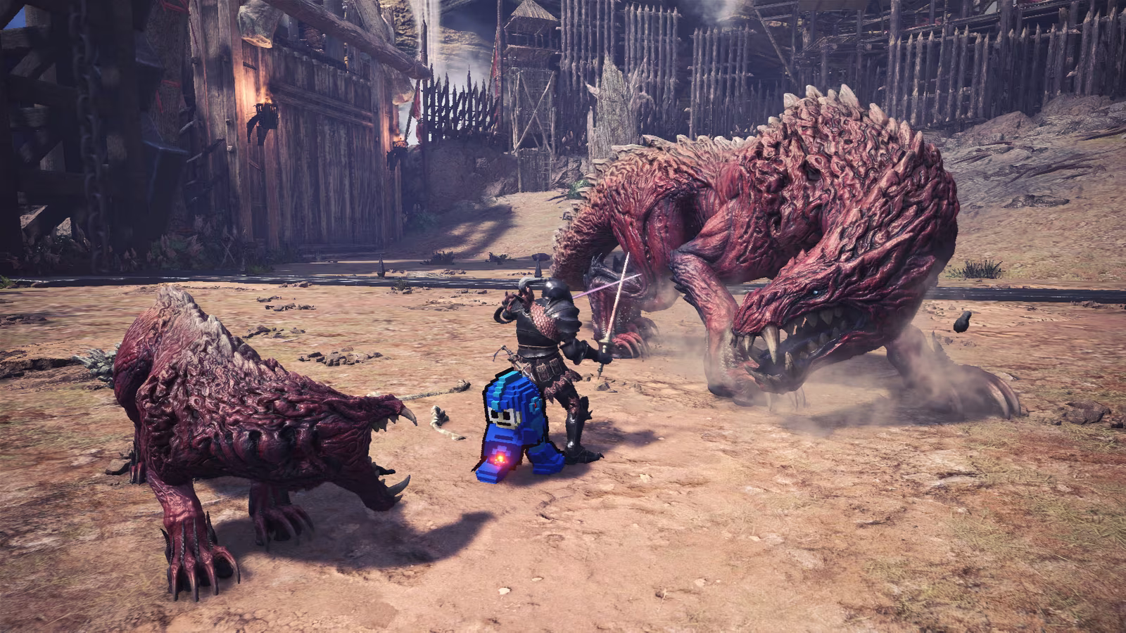 是的,如同家機版之前登場過的,透過活動換取的衣裝。能讓艾露貓搖身一變成 3D 點陣圖描繪的洛克人。只要等級 HR 13 以上,在活動期間參與「斬擊大騷動!!? 」任務,解決一大一小的慘爪龍,即可拿取素材票券。
