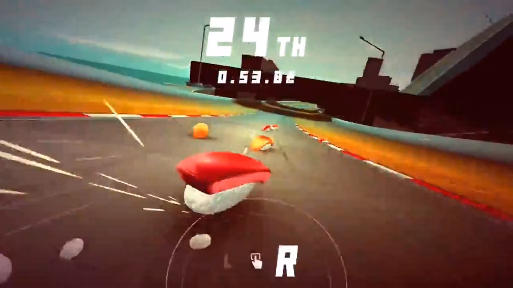 推特發燒《Running Sushi》壽司賽車手遊,一撞車生魚片就甩出去了 🍣🏁