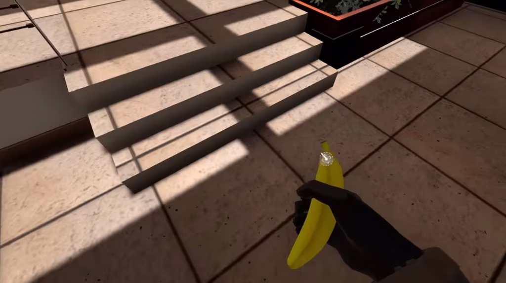 有趣的是,香蕉也是一種戰術道具,布置在必經的道路上,讓踩到的人滑倒(友方似乎也會),非常鬧。這項玩法在多年前便已實裝在遊戲裡。