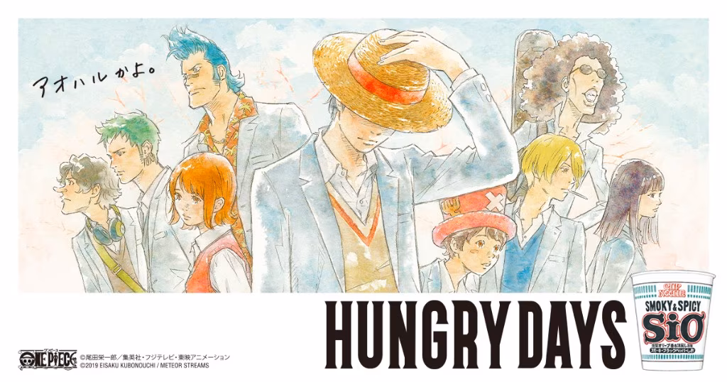 日清杯麵(NISSIN CUP NOODLE)又出新廣告,這次與知名動漫《航海王》(ONE PIECE)、漫畫家窪之內英策、樂團 BUMP OF CHICKEN 合作,推出 アオハルかよ 新系列「HUNGRY DAYS」。