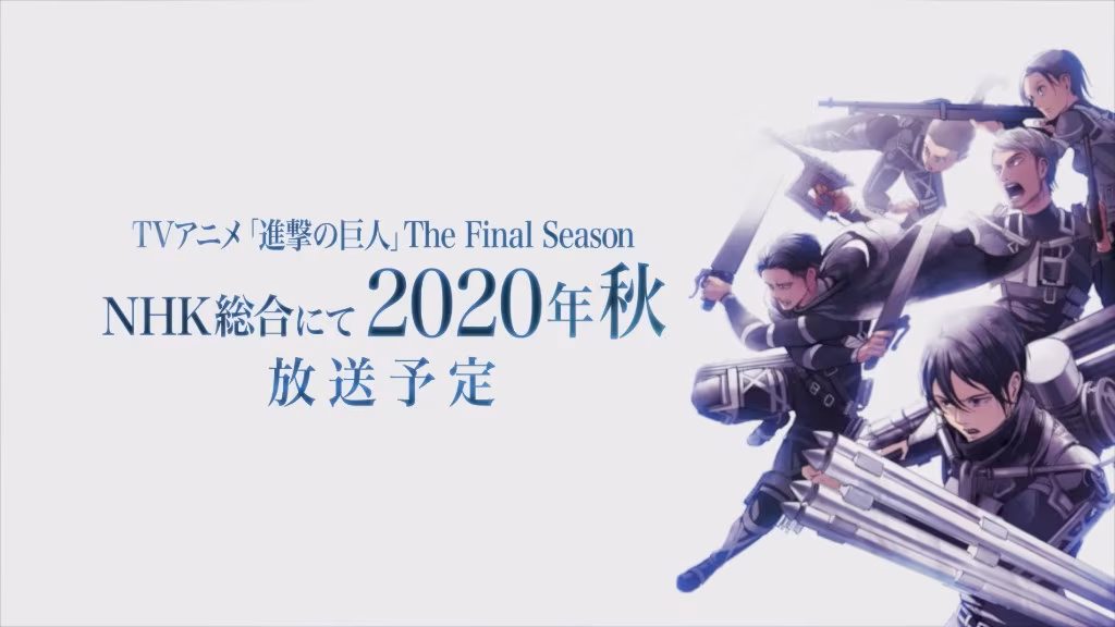 在 6 月 30 日《進擊的巨人》第三季動畫播映結束之際,官方宣布了第四季,也就是 The Final Season 即將在 2020 年秋天上映。同日放出首波預告短片。
