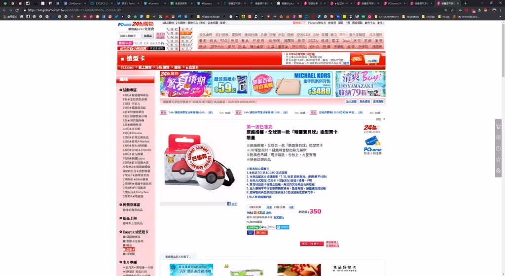 如果想透過 PChome 24h 購物買寶貝球的朋友不用搶了。就在今早 10 點整,由寶可夢原廠授權的「精靈寶可夢造型悠遊卡 -3D 寶貝球」,在 PChome 網路商店通路 1 分鐘內便已完售。
