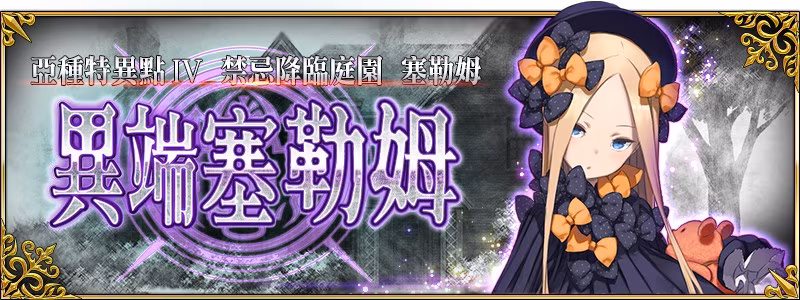 《Fate/Grand Order》繁中版(命運/冠位指定,FGO)即將實裝「亞種特異點 Ⅳ 禁忌降臨庭園 塞勒姆 異端塞勒姆」將在 15 日維護後開始。