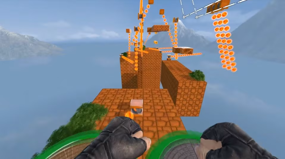 《絕對武力:全球攻勢》(Counter-Strike: Global Offensive;CS:GO)支援 Steam 工作坊,雖然最近被 Valve 列管為 Mod 上傳審查遊戲之一,但近期有一個單人 Mod 卻惡搞了近期 Nintendo Switch 相當火紅的《瑪莉歐創作家 2》,打造出傳統經典關卡 1-1 的第一人稱 3D 版。只不過,這是地獄難度的 1-1。