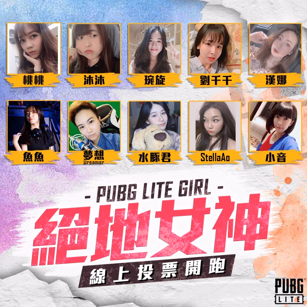 經過營運團隊第一階段嚴格篩選後,終於選出 10 位「絕地女神」候選人,歡迎玩家將神聖的一票投給心目中的絕地女神,獲勝者可正式成為《絕地求生 輕量版》官方合作實況主。