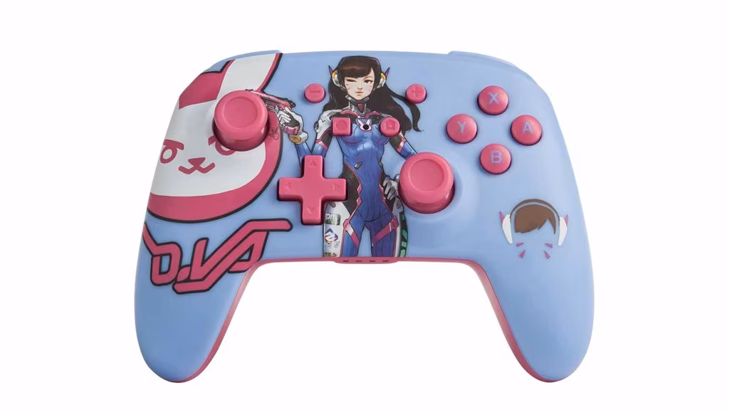 粉嫩的天空藍加上搶眼的桃紅色,搭配上 D.Va 標誌的兔子 Logo,這款 D.Va 版本的 Nintendo Switch Pro 控制器由澳洲遊戲配件零售商 EB GAMES 推出,當然,它和一般的Nintendo Switch Pro 控制器在功能上並沒有差別。