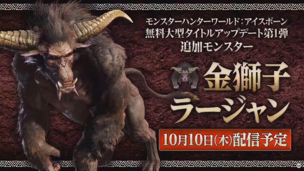 卡普空在今(9/12)日東京電玩展會場舞台上, 《魔物獵人》系列總監过本良三首度展示《魔物獵人 世界:Iceborne》即將登場的免費更新魔物「金獅子 拉加恩」的實機試玩,並宣布金獅子將於 10 月 10 日正式登場。