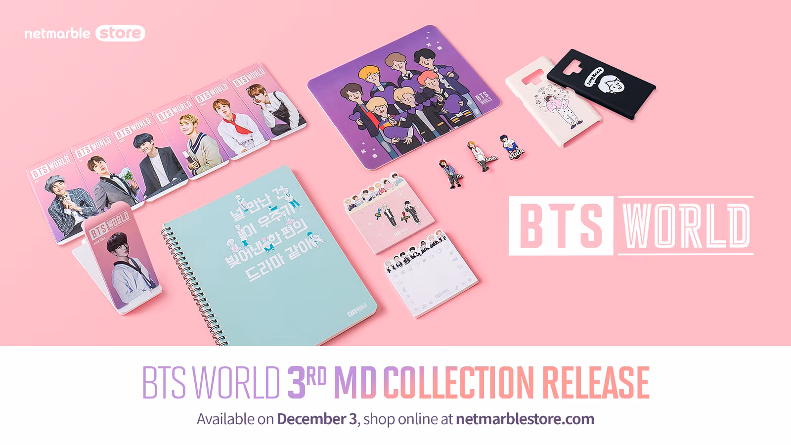 網石公司(Netmarble Corporation)今(29)日宣布,全新第 3 波《BTS WORLD》周邊商品即將在台灣時間 12 月 3 日上午 9:30 開賣。