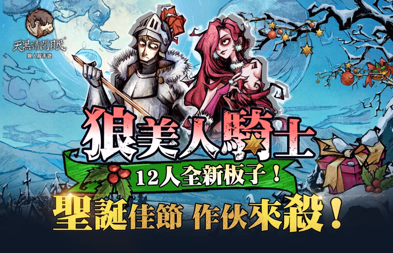 台灣恩奕遊戲代理發行的超人氣狼人殺手遊《天黑請閉眼-官方狼人殺繁體版》,官方 12/19 正式宣布配合聖誕佳節,迎來「狼美人騎士」大型版本更新,祭出四大活動,聖誕期間的狼人殺依然是寒冷冬日的最熱話題!
