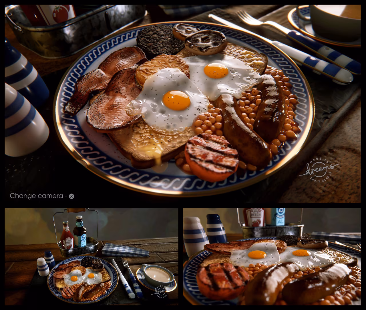 而這遊戲究竟這遊戲能做到什麼程度?Media Molecule 首席設計師 John Beech 就利用了遊戲中的機能做出了一頓傳統的英式早餐並命名為「Full Beech breakfast」。